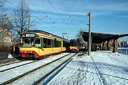 Два трамвая на станции в окрестностях Карлсруэ зимой