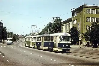 Трамва́й (от англ. tram — вагон, вагонетка и way — путь) — вид рельсового транспорта (уличного и внеуличного), обычно являющийся общественным городским электротранспортом[2][3], но есть исключения.