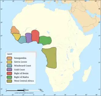 Подавляющее большинство захваченных в рабство африканцев было продано европейцам и американцам другими западноафриканскими жителями и полуевропейскими дельцами (half-European «merchant princes») (за исключением небольшого количества рабов, захваченных в прибрежных районах). Кроме португальцев, европейские работорговцы не принимали участие в набегах из-за большой смертности европейцев от малярии (до появления лекарства от малярии хинина)[5]. Крупномасштабное проникновение европейцев в глубь Африки начинается только во второй половине XIX века, до этого Африка за пределами побережья была практически неизвестна европейцам.