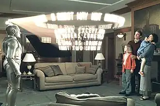 Робби-Робот в «Запретной планете» 1956 года имел иерархическую структуру команд, не позволявшую ему причинить людям вред, даже по приказу — такие приказы вызывали конфликт логических схем и блокировку. Робби был одним из первых роботов со встроенной системой безопасности в кинематографе. Сам Азимов остался доволен Робби.
