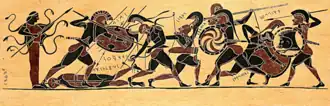 Мисиец Еврипил прибывает на помощь троянцам, убивает в бою Махаона и Пенелея, но погибает от руки Неоптолема.