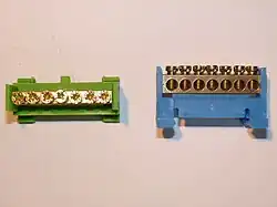 - ↑ В Европе ещё осталось много установок со старой цветовой схемой начала 1970-х. В новых установках используются жёлто-зелёные шины заземления в соответствии с IEC 60446. (Фаза/ноль+земля; Германия: чёрный/серый + красный; Франция зелёный/красный + белый; Россия: красный/серый + чёрный; Швейцария: красный/серый + жёлтый или жёлтый и красный; Дания: белый/чёрный + красный