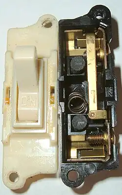 Бытовой выключатель — двухпозиционный коммутационный аппарат с нормально-разомкнутыми контактами, предназначенный для работы в сетях с напряжением до 1000 вольт, не предназначенный для отключения токов короткого замыкания, без специальных устройств дугогашения, местного управления, с ручным приводом.