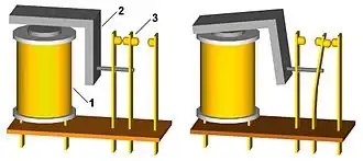 • ртутный контакт. Например, в выключателях, реагирующих на изменение положения в пространстве, жидким контактом является капля ртути, которая, попадая между электродами, замыкает электрическую цепь (газовое реле);