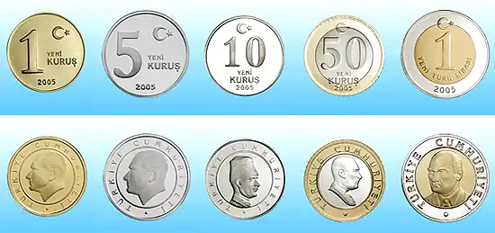 После денежной реформы 2005 года, куруш — мелкая разменная монета, идеологически соответствующая центу, евроценту или копейке. Выпускаются монеты номинала 1, 5, 10, 25 и 50 новых курушей и 1 новая лира. Монета в 1 новый куруш отчеканена из латуни, монеты номиналом 5, 10 и 25 курушей — из медно-никелевого сплава, 50 новых курушей и 1 новая лира отчеканены биметаллическими. На всех монетах изображены различные портреты Мустафы Кемаля Ататюрка. С 1 января 2009 года валюта Турции снова носит название «турецкая лира». Выпущена новая серия монет и банкнот, не содержащих слова «новый» (yeni) в номиналах.