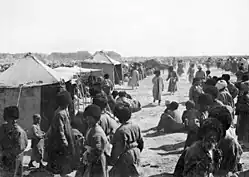С основания на побережье Каспийского моря города Красноводска в 1869 году началось вхождение туркменских земель в состав Российской империи. В 1879 году туркменам-текинцам удалось отразить российское вторжение[127]. Присоединение туркменских земель завершилось в январе 1881 года, когда русскими войсками после второй попытки крепость Геок-Тепе была взята.