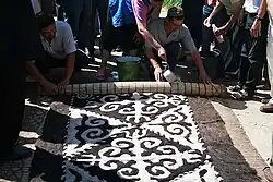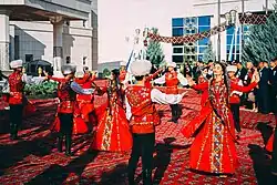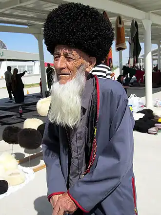 Туркме́ны (туркм. ед. Türkmen, мн. Türkmenler; исторически также туркома́ны, туркма́ны, трухме́ны) — тюркский народ, являющийся основным и коренным населением Туркменистана, а также автохтнонным населением Узбекистана, Казахстана[16][17][18], Ирана, Афганистана. С давних времён живут на территории Таджикистана, Пакистана, а также России (Астраханские и Ставропольские туркмены). Имеют древнеогузское происхождение и упоминаются в источниках под наименованием «туркмены» начиная с VIII в.[19] Подтверждено, что древние прямые предки туркмен жили на территории Средней Азии начиная с VI в. до н.э.[20][21] Туркмены Турции, Сирии и Ирака (другое наименование — туркоманы[22]) являются потомками среднеазиатских туркмен, мигрировавших на Ближний Восток в Средние века.