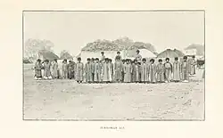 «Население городов и земледельческих селений составляли прямые потомки древних жителей Хорезма, впитавшие в себя многочисленные пришлые, главным образом, тюркские элементы, и подвергавшиеся уже к этому времени полному отуречению по своему языку... Вторую значительную этническую группу составляли туркменские племена, расселенные, как указано, к западу и югу от оседлых районов ханства, а частично и внутри их»[116].