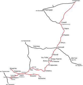 В 1960 году была открыта ветка от станции Актогай до советско-китайской границы — станции Дружба (Достык).