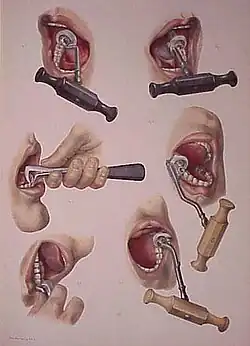 Перед открытием антибиотиков хронические инфекции зуба часто связывались с разнообразными проблемами здоровья, и поэтому удаление больного зуба было обычным лечением при различных заболеваниях. Инструменты, используемые для удаления зубов, датируются несколькими столетиями. В XIV веке Гуй де Чолиак изобрёл зубной пеликан, который использовался до конца XVIII века. Пеликан был заменён зубным ключом, который, в свою очередь, был заменён современными щипцами в XX веке. Также известно, что Пётр I умел удалять зубы.[1]