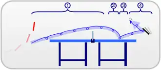| Подрезка | Backspin shot[8] / Chop | Защитный удар с сильнейшим нижним вращением для приема атакующих ударов за пределами стола | Нижнее, иногда с боковым |