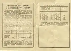 - Кольцо толщиной 16,4 мм могло быть использовано для установки объективов от фотоаппарата «Зенит» на дальномерные аппараты. Функция дальномера, естественно, не сохранялась.