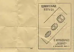 - Комплект из четырёх колец толщиной 5; 8; 16,4 и 26 мм с резьбой М39×1 для дальномерных фотоаппаратов «ФЭД» — «Зоркий», старых «Зенитов».