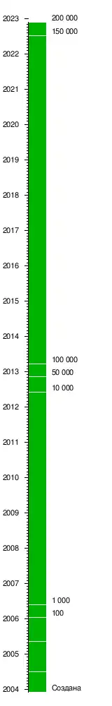 15 января 2006 года была написана 100-я статья[4], 24 мая того же года — 500-я, а 28 мая — 1000-я[5], затем 15 августа — 2000-я, 16 августа 3000-я, 17 августа — 4000-я[6].