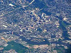 По мере усиления влияния Филадельфии центр города «мигрировал» на север и сейчас располагается к югу от реки Брендивайн, где Market st. пересекается с 11th st. и отходящей на северо-запад Delaware av. С начала XX века, а особенно активно с 1930-х годов здесь, вокруг площади Родни (Rodney sq.) формируется деловой центр города, с присущей ему многоэтажной застройкой. Здесь находятся офисы крупнейших базирующихся в Уилмингтоне компаний, основные гостиницы (Sheraton и Hotel DuPont) и множество развлекательных заведений. Таким образом, центр Уилмингтона имеет форму асимметричного расширяющегося к северу клина, занимающего все пространство между реками Брендивайн и Кристин.