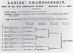 К моменту проведения третьего чемпионата Всеанглийского клуба он уже не был единственным лаун-теннисным соревнованием в Великобритании. В 1878 году стартовал чемпионат Шотландии, а в 1879 году — турнир мужских пар в Оксфорде и чемпионат Ирландии, на котором помимо мужского одиночного разряда чемпионское звание оспаривалось в мужском парном и женском одиночном разрядах; первый чемпион Ирландии, Вер Сен-Леже Гулд, в дальнейшем стал и участником финала на Уимблдоне. На само́м Уимблдонском турнире мужской одиночный разряд, однако, всё ещё оставался единственным видом программы[12]. Только в 1884 году, когда оксфордский парный турнир закрылся из-за нехватки средств, его награды были переданы Всеанглийскому клубу, и тот добавил мужской парный разряд к одиночному. В этот же год на Уимблдоне стартовал и женский одиночный турнир, который изначально планировал проводить Лондонский спортивный клуб, уступивший это право Всеанглийскому. Первый мужской парный титул на Уимблдоне выиграли братья Уильям и Эрнест Реншоу, к тому моменту и в одиночном разряде бывшие признанными лидерами британского тенниса; первой чемпионкой Уимблдона среди женщин стала дочь приходского священника Мод Уотсон, в финале переигравшая свою старшую сестру Лилиан[13].