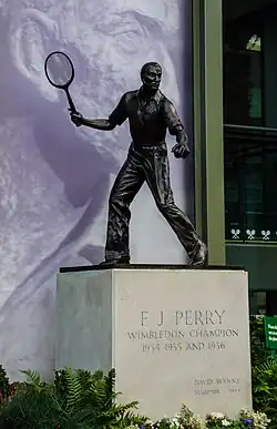 На территории комплекса находятся несколько скульптурных изображений, посвящённых британским теннисным чемпионам. В число скульптур входят бронзовая ростовая статуя трёхкратного чемпиона Уимблдона в одиночном разряде Фреда Перри и пять бронзовых бюстов британских теннисисток, выигрывавших турнир после его переезда на Черч-роуд в Уимблдоне. Помимо этого, на территории клуба расположены Мемориальные ворота Дохерти; ворота, прежде представлявшие собой главный вход на территорию комплекса, в настоящее время перенесены в его южную часть, сохранив статус памятника[88].