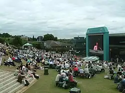 Уимблдонский турнир проходит на территории Всеанглийского клуба лаун-тенниса и крокета (англ. The All England Lawn Tennis & Croquet Club, AELTC) в Уимблдоне (Лондон). Территория клуба в Уимблдоне, включая автомобильные стоянки, превышает 42 акра (17 га)[83], из которых 13,5 акра занимают собственно корты чемпионата и окружающая инфраструктура[84]. Руководство клуба изыскивает возможности для расширения его территории; в частности, в 2015 году была сделана попытка получить в аренду территорию площадью 73 акра, в настоящее время занимаемую Уимблдонским гольф-клубом. Однако члены гольф-клуба отклонили предлагаемую сделку, по условиям которой AELTC был готов выплатить им 25 миллионов фунтов за досрочное прекращение действующего договора об аренде[85]. К концу первого десятилетия XXI века клуб также располагал тренировочным комплексом на шесть травяных кортов в Райнз-парке — близлежащем районе боро Мертон[86].