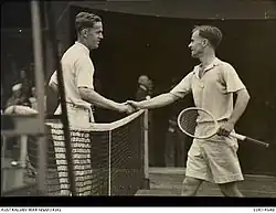 1937 год стал не только годом последней победы британцев на межвоенном Уимблдоне, но и годом первой телевизионной трансляции теннисного матча: Би-би-си вела прямой телевизионный репортаж с игры первого круга между Банни Остином и ирландцем Джорджем Роджерсом[36]. Телевизионные трансляции начались через десять лет после того, как репортажи с Уимблдонского турнира начала вести международная служба радио Би-би-си[33] (на протяжении следующих двух десятилетий Би-би-си оставалась монополистом в области телевизионных трансляций с Уимблдона, пока в 1956 году это право не разделила с ней Independent Television Network, ведшая трансляции до 1968 года включительно[37]). Однако последние годы перед началом Второй мировой войны британскому телевидению и радио приходилось освещать главным образом триумфы американцев. Это было особенно заметно в 1939 году, когда в списке чемпионов оказалось всего четыре имени, и все они были американкими: Элис Марбл и Бобби Риггс стали абсолютными чемпионами, победив во всех трёх разрядах, а в женских и мужских парах соответственно к ним присоединились Сара Фабиан и Элвуд Кук[38].