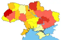 Географическое распределение редакторов Википедии по регионам Украины в 2016 году