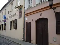 На соседнем доме (Gaono g. 3), часть которого занимает магазин обуви, висит таблица с планом вильнюсских гетто и мемориальная доска, отмечающая место, где в 1941 году были ворота «Малого гетто». Этот дом принадлежал виленскому почтамту.