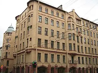 - Дом № 16 — доходный дом Налимова. Построен в 1914 году по проекту архитектора Густава фон Голи. Квартира владельца дома находилась на третьем этаже, и до 1996 года в ней проживала племянница Налимова — Мария Михайловна Налимова, заслуженный архитектор-реставратор, инспектор ГИОПа. Также в этом доме в кв. 32 в июне — июле 1917 года жил И. В. Сталин[2]. Также в этом доме жил известный историк-медиевист Иван Гревс[3].