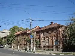 Здание гимназии Горенбург-Островской, 1860-е гг. с пристройкой 1909 г. (позднее школа № 3). Памятник архитектуры местного значения. Всё здание занимает весь квартал от ул. Пушкина до ул. Сакко и Ванцетти. |