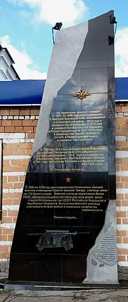 • 1 октября 2012 года, по инициативе членов Совета ветеранов и выпускников Ульяновского военного училища связи, перед КПП установили стелу[5].