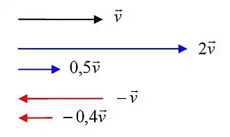 Умножение вектора на целое положительное число равно сложению вектора с самим собою раз. В результате возникает новый вектор с тем же направлением, что и исходный, но в раз большим модулем[6][7]: