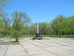 - ↑ Братская могила воинов, погибших в боях с фашистскими захватчиками, и мирных жителей, расстрелянных фашистами (недоступная ссылка — история).