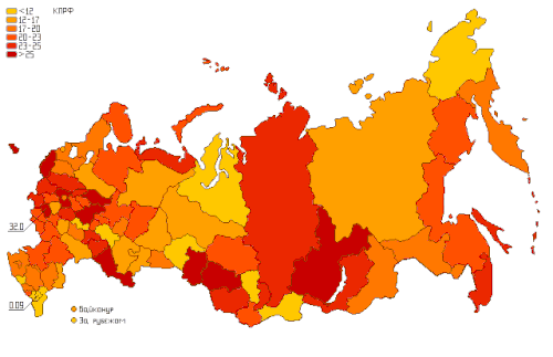 Результаты КПРФ на региональных выборах 4 декабря 2011 г.