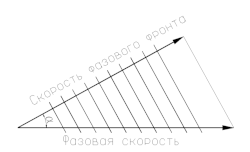 где — волновое число, — угловая частота. При этом фазовая скорость вдоль направления, отклонённого от волнового вектора на угол , будет равна: