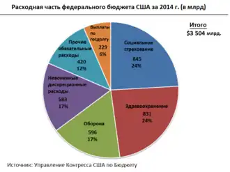 Федеральный бюджет США, Бюджет Правительства Соединённых Штатов (англ. the Budget of the United States Government; англ. the United States federal budget) предлагается Президентом США в виде запроса к Конгрессу. В нём содержатся рекомендации по структуре расходов федерального правительства на следующий финансовый год (начинающийся 1 октября). В ходе рассмотрения бюджета в Конгрессе законодатели принимают законы об ассигнованиях, которые направляются Президенту для подписания. Президент может наложить на закон вето, но оно может быть преодолено голосованием в Конгрессе.