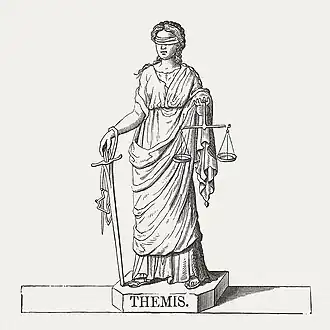 Иносказательно Фемида — правосудие, закон; весы Фемиды — символ правосудия; служители (слуги, жрецы) Фемиды — слуги закона, судьи[5][6].