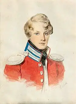 - ↑ По кавалерии // За болезнью // Увольняются от службы: // Декабря 14 дня 1833 года <…> приказ // Высочайшие приказы сентябрьской трети 1833 года. — СПб., 1834. — С. 833.