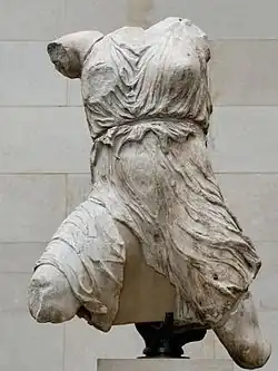 Отмечают огромное мастерство Фидия в трактовке одежды, в котором он превосходит и Мирона, и Поликлета. Одежда его статуй не скрывает тело: не рабски ему подчинена и не служит его обнажению[6].
