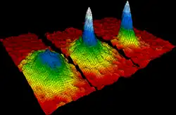 В 1995 году газ атомов рубидия, охлажденный до температуры 170 нК, использовался для экспериментальной реализации конденсата Бозе — Эйнштейна, нового состояния вещества, первоначально предсказанного Ш. Бозе и Альбертом Эйнштейном, в котором большое количество атомов занимает одно квантовое состояние[87].