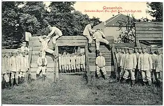 Занятие по физической подготовке в Германской имперской армии. Преодоление полосы препятствий. Гросенхайн, 1915