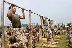 Подтягивания на турнике — обязательное упражнение по физической подготовке во всех армиях мира. На фото — морские пехотинцы США, Япония, 2012