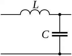 Комплексное (с учетом сдвига фаз между напряжением и током) сопротивление катушки индуктивности есть и комплексное сопротивление конденсатора , где — мнимая единица, — угловая частота входного гармонического сигнала, поэтому для ненагруженного LC-фильтра коэффициент передачи будет выражаться формулой для делителя напряжения: