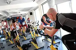 Фи́тнес-клуб — место, сочетающее в себе спортивный зал для проведения групповых и танцевальных программ, спортивный зал для игровых видов спорта (не во всех фитнес-клубах), тренажёрный зал, плавательный бассейн (не во всех фитнес-клубах; для спортивного плавания и аквааэробики), кардио-зону, залы аэробики, студии сайкла, студии пилатеса на большом оборудовании, студии единоборств, студии йоги.[1]. Ряд фитнес-клубов заключили контракты на преподавание специальных дисциплин новозеландской группы спортсменов LesMills International, однако из-за санкций зарубежных стран от LesMills International отделилось российское представительство LesMills Russia, которое было переименовано в Национальную лигу тренеров[2], при этом тренировки LesMills продолжают проводиться в РФ уже без слова Body (вместо BodyCombat теперь Combat и так на прочих дисциплинах), вместо тренировок LesMills Barre в РФ преподают авторскую тренировку Functional Ballet, а вместо тренировки LesMills Sh'Bam преподают авторскую тренировку Hype Dance. Также является сооружением, которые имеют площади для проведения оздоровительных и фитнес-тренировок при помощи силовых упражнений и оборудования для кардио-тренировок и которые открыты для свободного посещения за плату на основе платежей за разовое посещение или по членской системе (IHRSA). Ряд фитнес-клубов комфорт и премиум классов имеют уличные площадки WorkOut, места для загара и выполнению групповых программ на улице и у некоторых фитнес-клубов VIP-классов есть также открытые бассейны на улице, а также ряд фитнес-клубов комфорт и премиум класса проводят внутриклубные, городские и в некоторых случаях международные спортивные соревнования.
