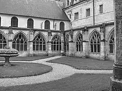 Стрельчатый свод клуатра занимательно декорирован. Замковые камни украшены гербом аббатства, гербом аббата Жана де Брамто и группой из 6 персонажей. Восточная, западная и северная галереи более низкие и датируются периодом поздней готики (1410—1530). Дверь ризницы выходит в помещение галереи.