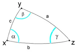 При решении косоугольного сферического треугольника по двум сторонам и углу между ними из первой и второй формул получают углы и , а затем сторону находят из третьей или четвёртой формулы. При решении косоугольного сферического треугольника по двум углам и прилежащей к ним стороне из третьей и четвертой формул получают стороны и , а затем угол находят из первой или второй формулы.