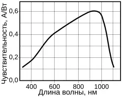 Типовая спектральная чувствительность кремниевого фотодиода.