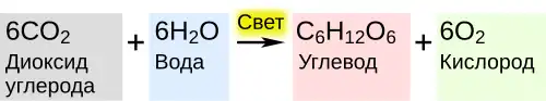 Упрощённое уравнение фотосинтеза, происходящего в растениях