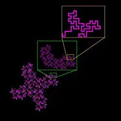 Как в случае с размерностью, определенной для линии, квадрата и куба, фрактальные размерности — общие характеристики, что не позволяет однозначно определить структуру[23][24]. Значение для фрактала Коха приводилось выше, например, количественной структуре свойственен масштаб, но этого не достаточно, чтобы построить его. Многие фрактальные структуры и узоры можно построить с таким же масштабом, как у кривой Коха, но всё равно они будут отличаться от кривой Коха (см. Рисунок 6).