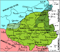 Использование франкопровансальского во Франции отмечено в районе Рона — Альпы (Божоле, Бресс, Дофине, Домб, Савойя), на юге Франш-Конте (Юра, Ду), а также на юго-востоке Бургундии (Сона и Луара). Отсутствие письменного языка приводит к его дальнейшему вымиранию (переписывались лишь старинные песни и сказки, элементы устного творчества). В XXI веке с целью поддержания языка некоторые писатели занимаются стандартизацией правописания и переводами своих сочинений.