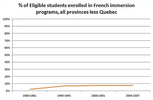 - ↑ «Official Languages: Annual Report 2007—2008, Volume 1, Official Language Support Programs.» Canadian Heritage, cat. No. CH10-2008-1, 2008, pg. 31.