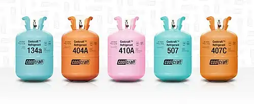В автомобильных кондиционерах до 1992 года в основном применялся тип фреона R-12 (дифтордихлорэтан), вредный для озонового слоя, поэтому для этих целей стали применять R-134 (тетрафторэтан), который более безопасен для озонового слоя Земли[7].