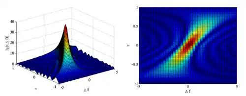 Положим, что принимаемый сигнал имеет некоторый доплеровский сдвиг обусловленный скоростью цели и задаётся выражением . Тогда отклик согласованного фильтра определяется как